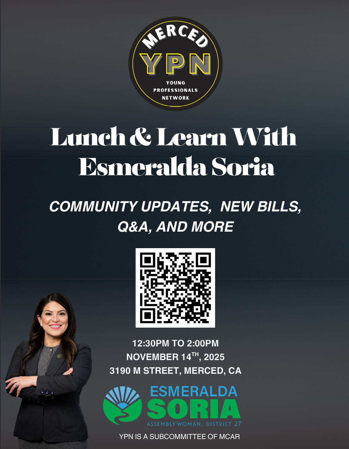 - November 14, 2025 – Lunch & Learn with Esmeralda Soria from 12:30pm to 2:00pm